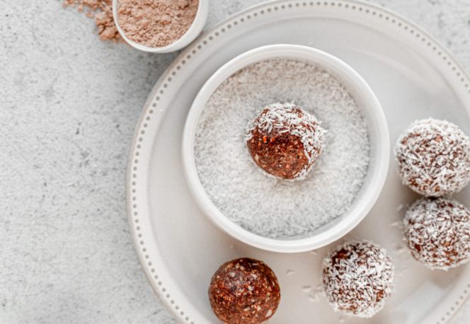 Recette d'energy balls healthy avec datte et chocolat, pour les sportifs et les gourmands, vegan, sans...
