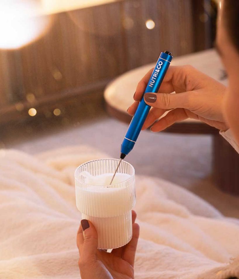 Envie d’ajouter une touche d’onctuosité à votre collagène ? De faire un latte crémeux avec votre Whey ? Ou tout simplement d’obtenir un mélange parfait de votre Nutra ? Notre mousseur électrique sera votre meilleur allié ! Grâce à sa vitesse de rotation rapide et son manche en acier inoxydable, il est idéal pour faciliter votre mélange ou créer une mousse riche et crémeuse en 15 à 20 secondes pour votre boisson.