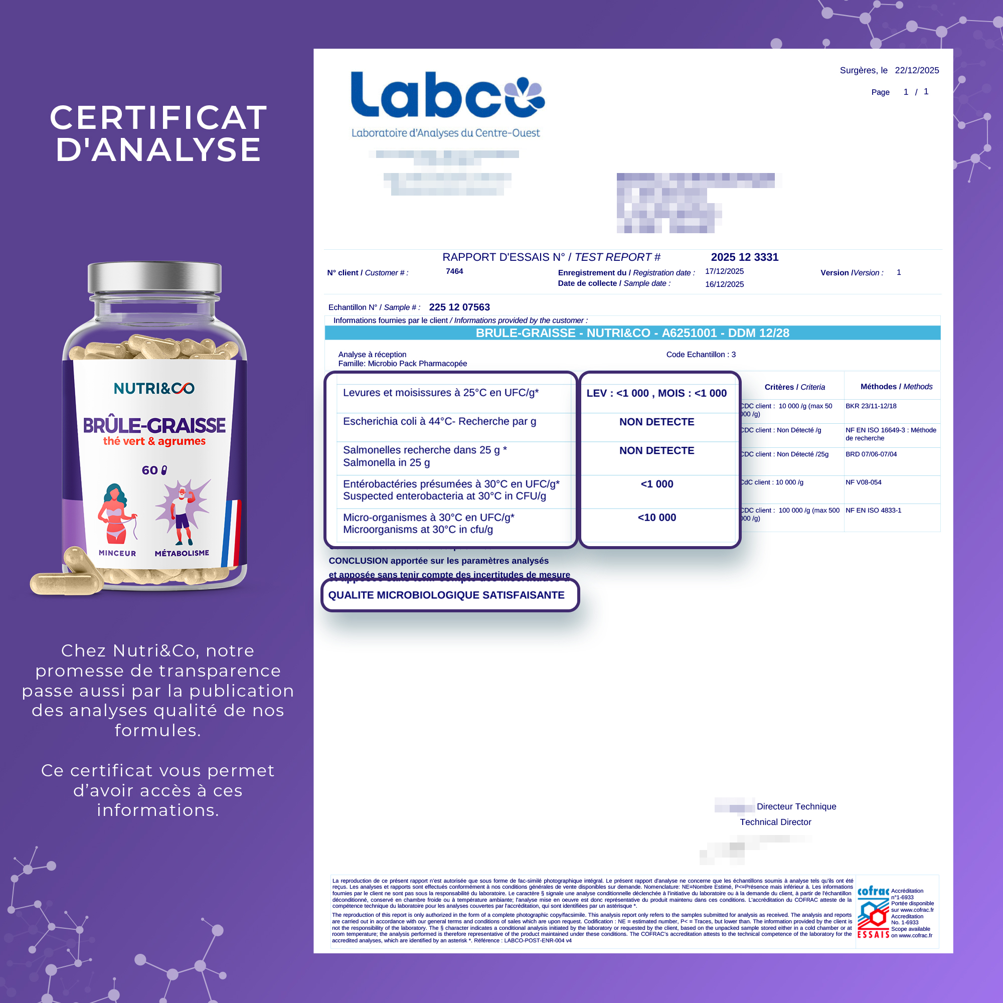 Brûle Graisse - Analyses microbiologiques