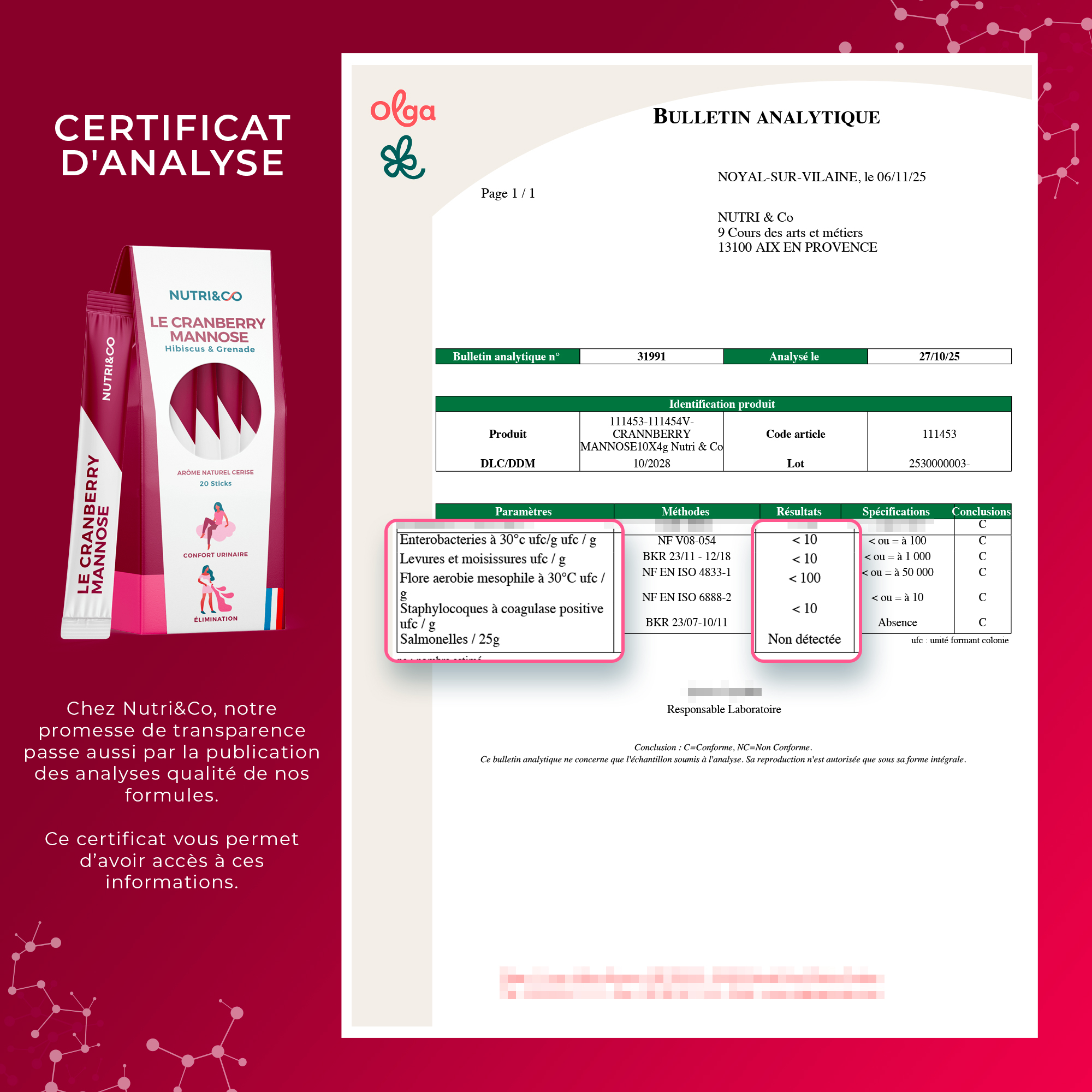 Cranberry Mannose - Analyses microbiologiques