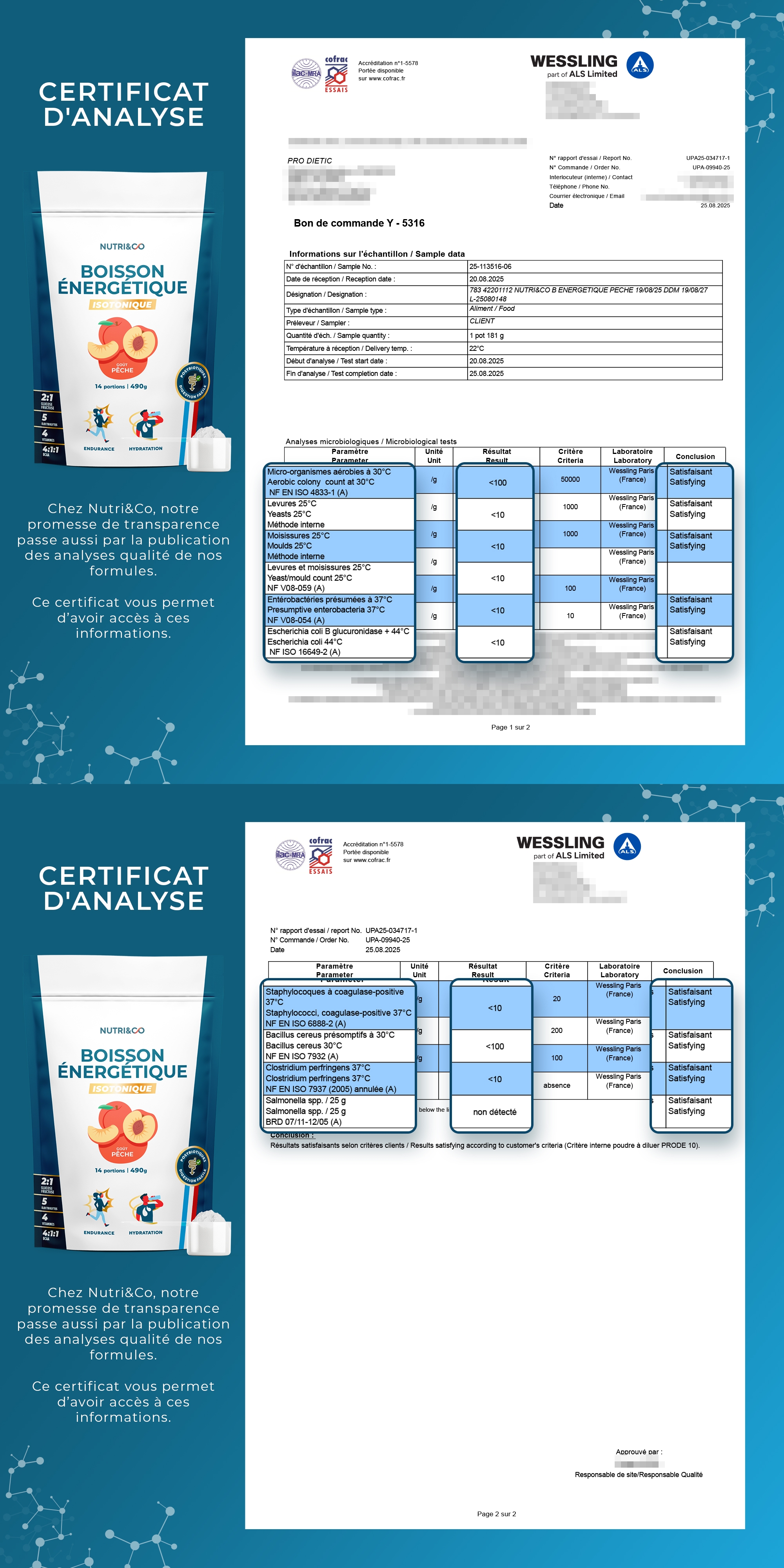 En complément d’une source de protéines (whey ou protéines végétales) pour la récupération musculaire, notre Boisson énergétique est également idéale pour bien récupérer d’un effort prolongé avec ses glucides, ses électrolytes et ses antioxydants.