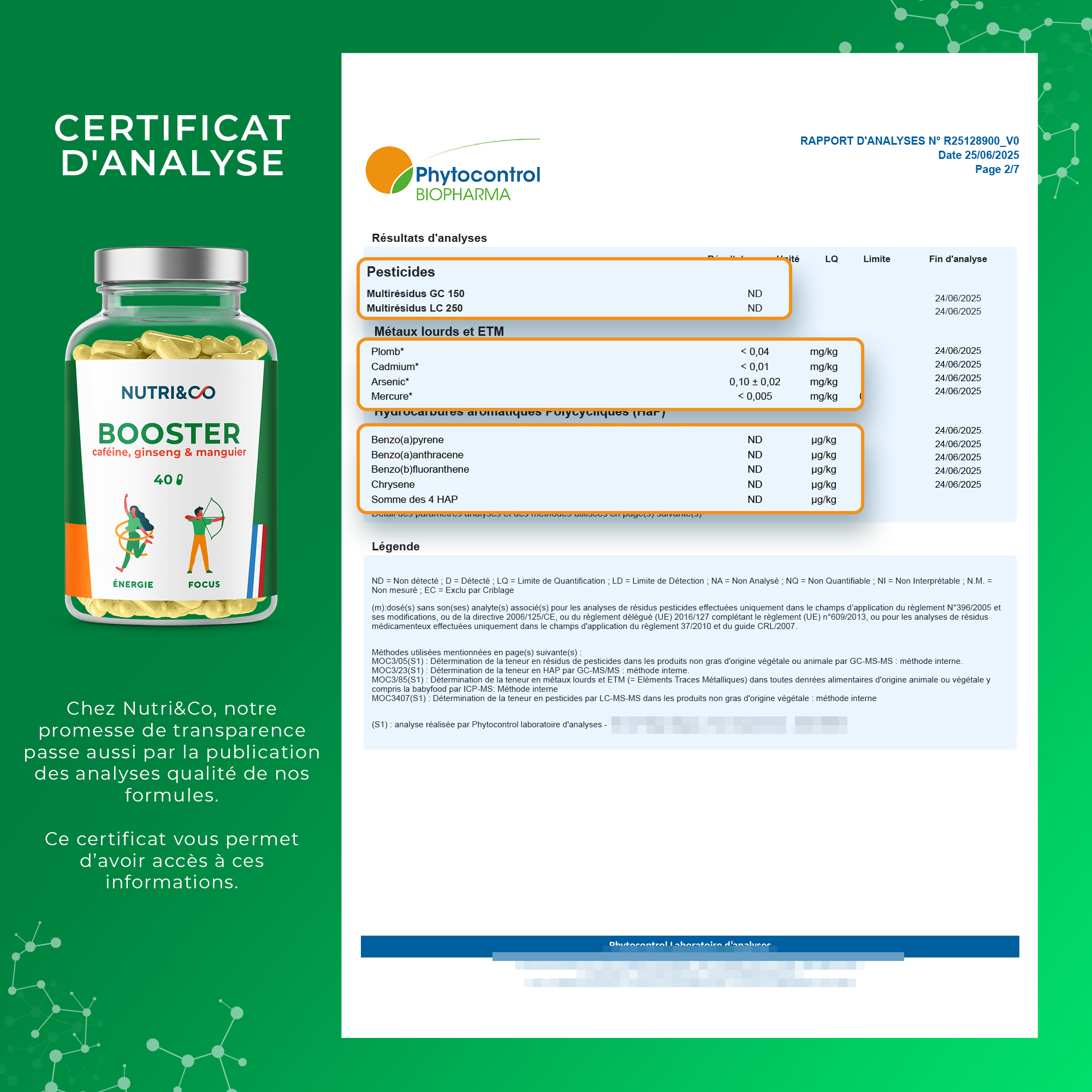 | Total caféine d'origine végétale | 80mg | - |